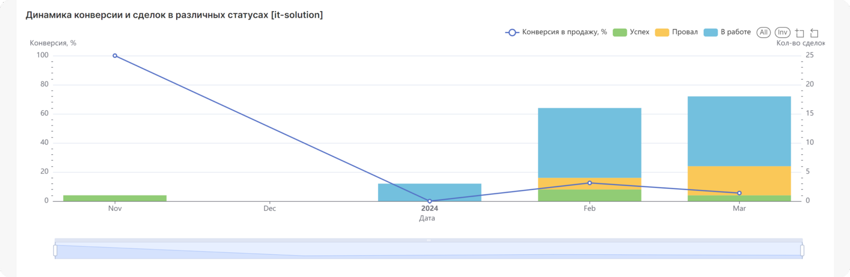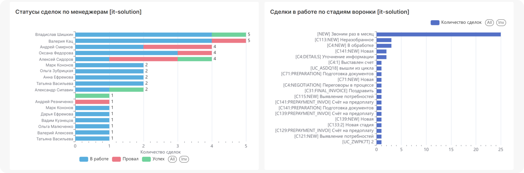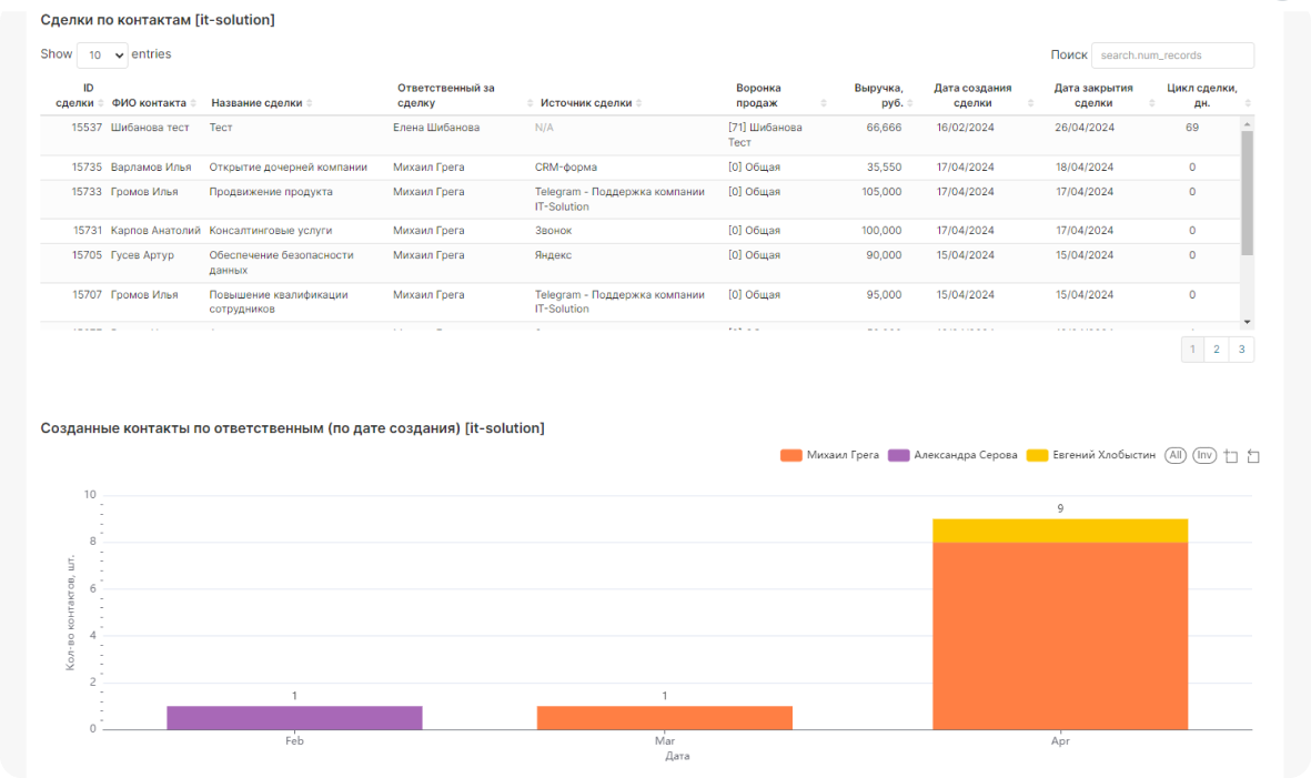 Заказчик предпочел просматривать данные с результатами аналитики непосредственно на официальном сайте Roistat. Однако, в случае необходимости, может быть добавлена возможность обратной интеграции. Таким образом, данные по речевой аналитике будут автоматически выгружаться на портал Битрикс24.