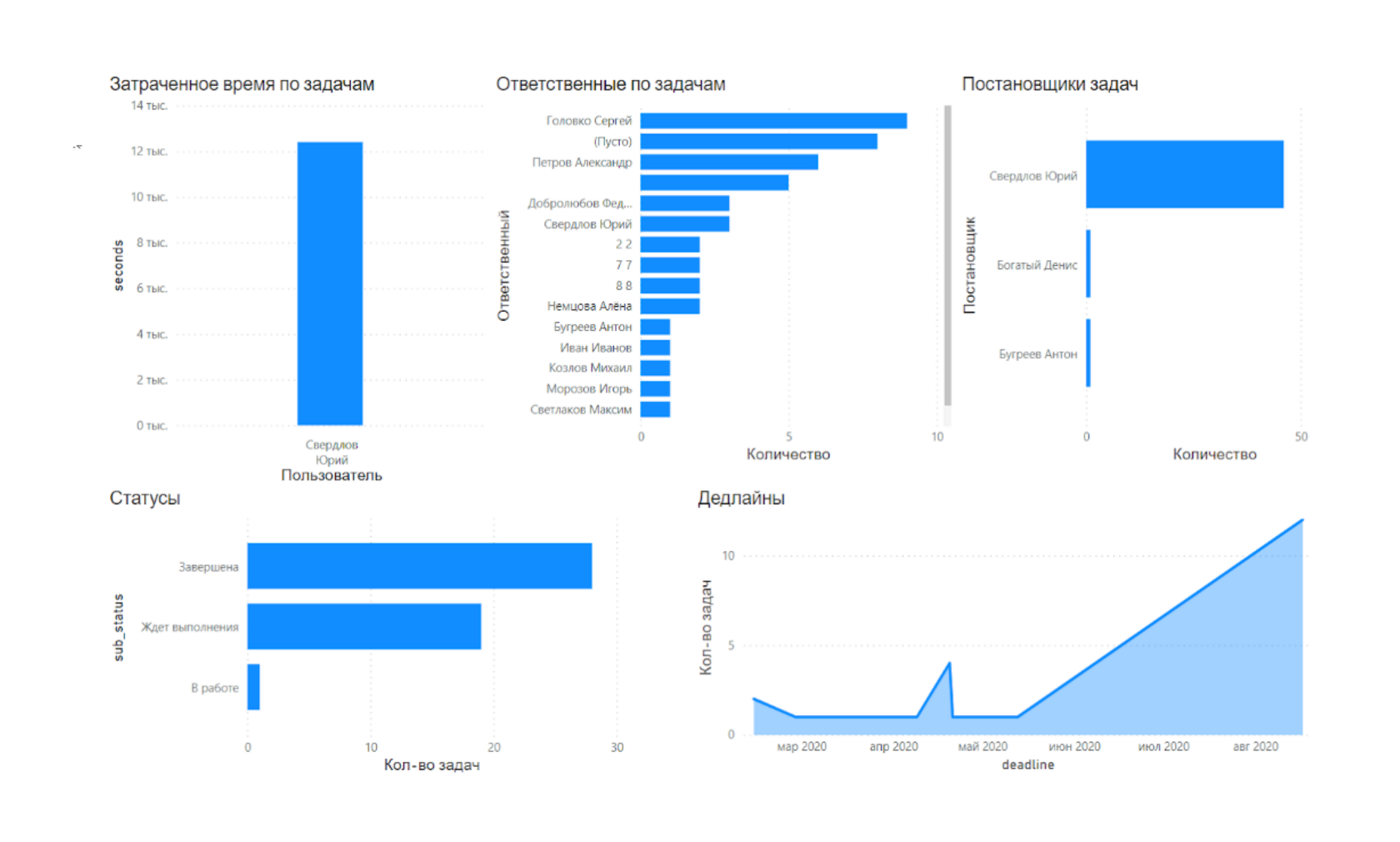 Выгружайте подробный отчет по задачам для удобного контроля эффективности работы сотрудников.