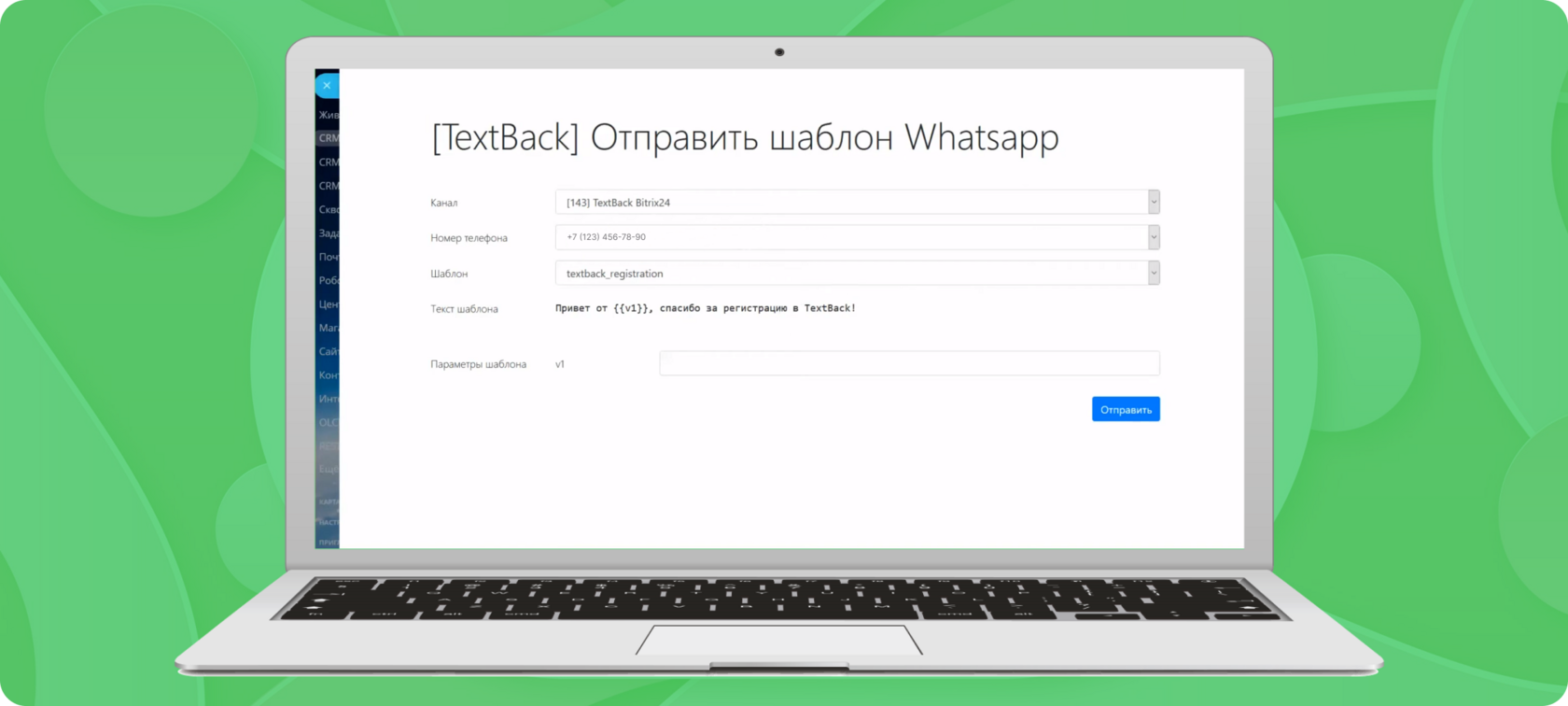 Зарегистрироваться в сервисе TextBack и установить приложение на ваш портал Битрикс24.