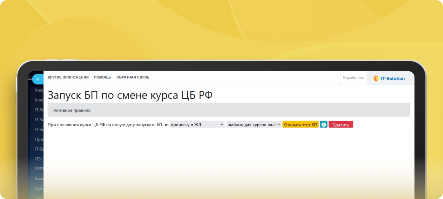 Приложение от IT-Solution, которое позволяет настроить автоматический запуск любого бизнес-процесса при смене курса валют ЦБ РФ!