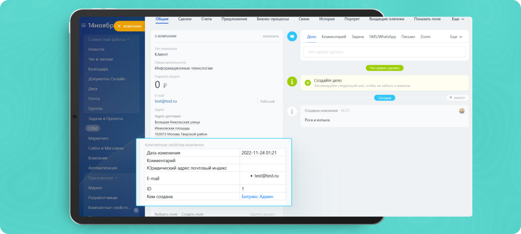 Новое приложение Компактные свойства сделок от IT-Solution позволяет вывести в удобном виде необходимую вам информацию внутри карточки компании в CRM Битрикс24.