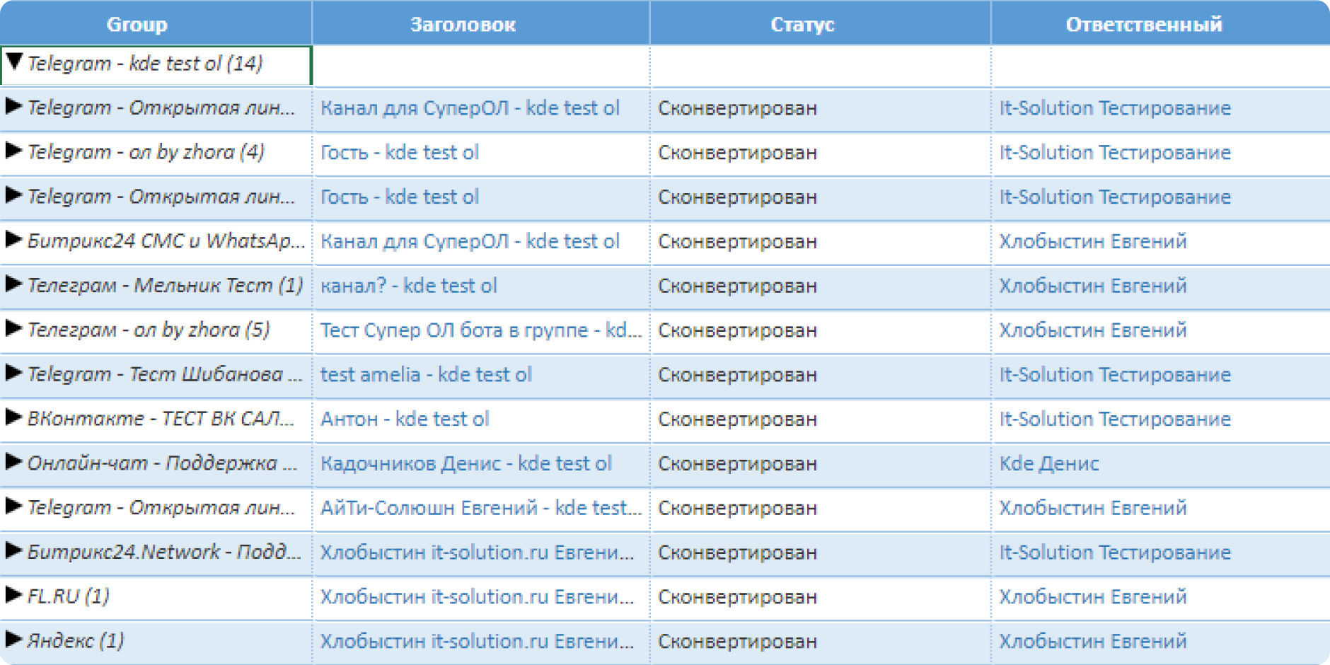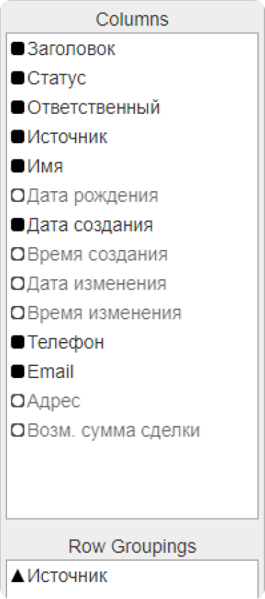 Получите список лидов в удобной таблице с группировкой по выбранным полям
