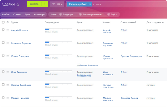 Сотрудникам HR-отдела больше не придется заходить на портал rabota.ru, чтобы посмотреть отклики по вакансиям. Раз в 10 минут приложение будет автоматически собирать данные, отправлять все новые отклики на ваш портал Битрикс24 и создавать по каждому Сделку.