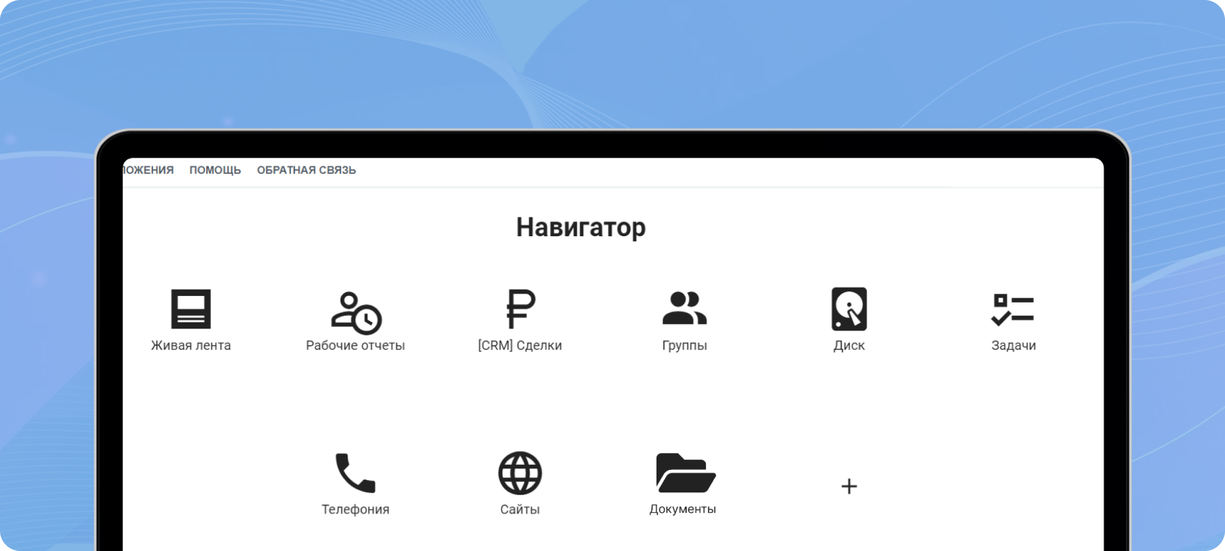 Приложение выполняет ту же функцию, что и стартовое окно браузера, только в рамках Битрикс24. В меню вы можете сохранить не только ссылки на разделы Битрикс24, но и любые другие ресурсы.