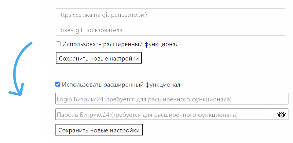 Приложение может работать в базовом и расширенном режимах. Расширенный режим позволяет выгружать больше настроек, но потребует ввести логин и пароль от учетной записи на портале.