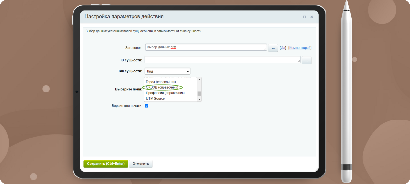Готовый полный справочник ОКВЭД в качестве пользовательских полей в карточках Лида, Контакта, Сделки и Компании