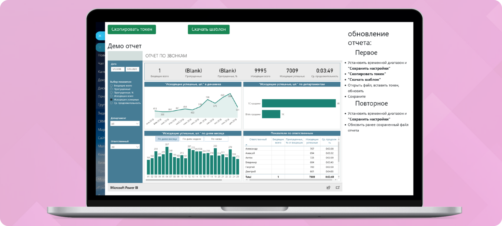 Интерактивные отчеты более наглядно отображают информацию. Таким образом вы сможете создать подробную презентацию о работе колл-центра компании для общей планерки или встречи с руководством.